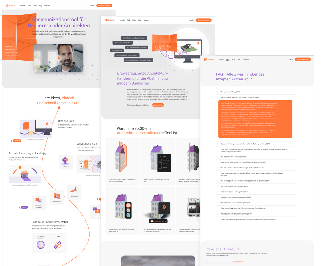 Inzept3D (Universitätsausgründung der Universität Bochum), die als Ziel hatten, ein automatisiertes Rendering für Architekturprojekte anzubieten. In der Gründungsphase (mehr als 3 Jahre) musste ein 360°-Kommunikationskonzept für Stakeholder, Kunden und potenzielle Kunden erstellt werden.